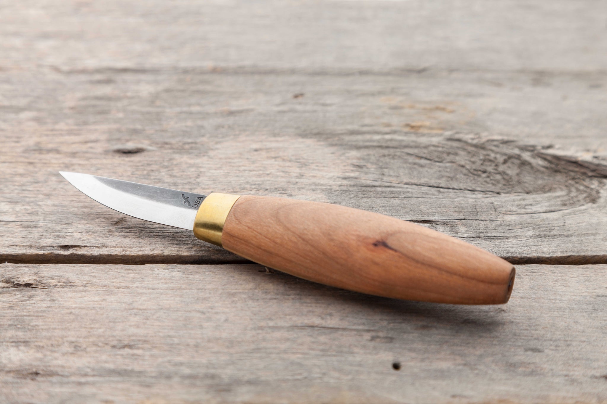 There is no flex in the blade – which makes it sturdy and extremely reliable. The rigidness allows for deep cuts and markings. The blade is thick along its spine and the core is made of high-carbon steel. This results in a very hard edge for superior edge retention. For added strength, the tang of each knife extends completely through the handle. The handle is made of beautifully conditioned cherry hardwood and feature a brass ferrule.