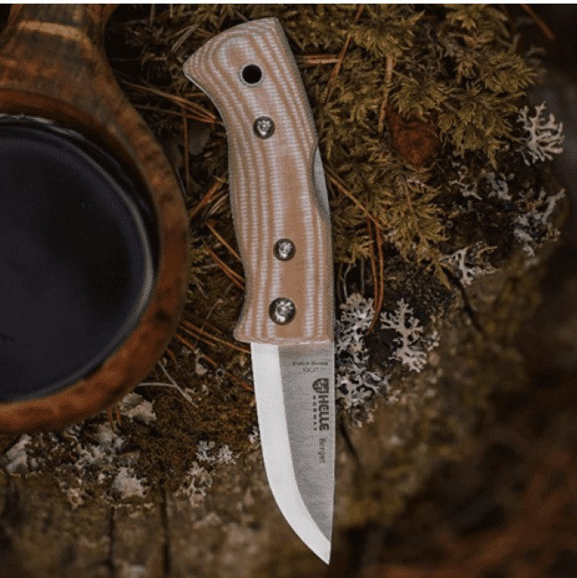 Berget is the first ever standard Helle model with Micarta handle scales. Small and sturdy, the Berget folding knife is based on the smallest module in our folding lineup. Its sturdy construction and scandi-grind makes it the perfect outdoor EDC – easy to carry in your pocket and a solid tool for your outdoor adventures.