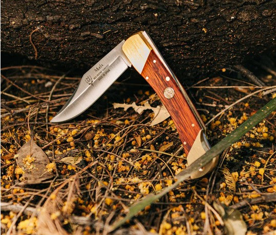 Folding blade with lockback and anti-slip natural coral wood scales.Specifications